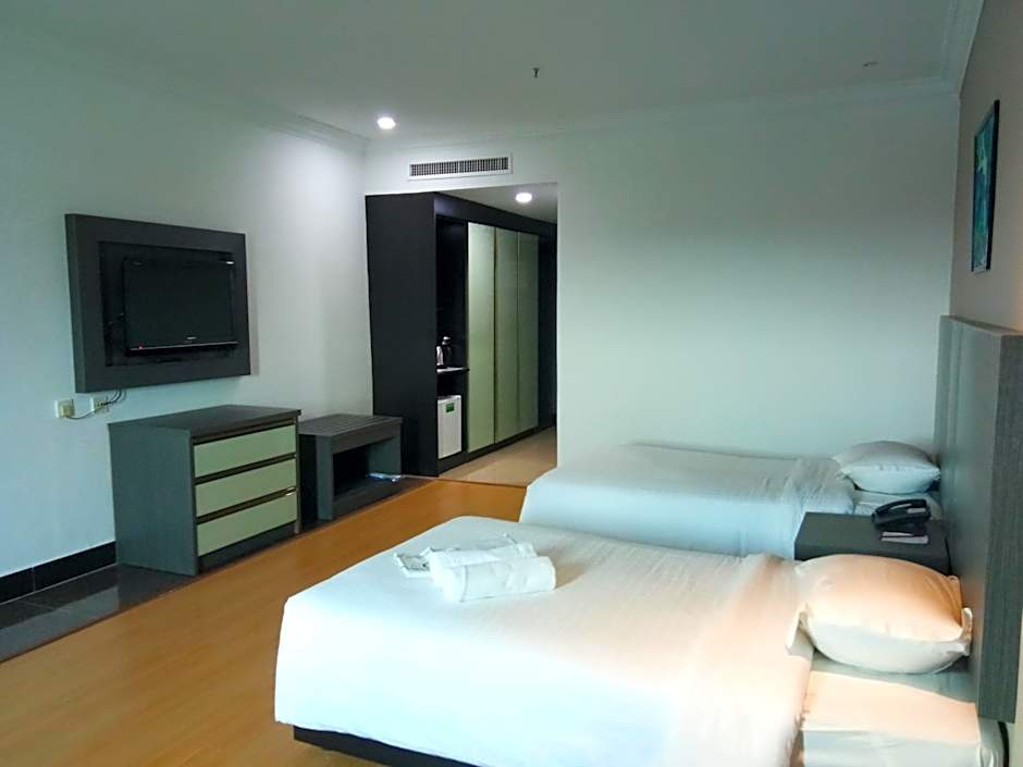 A room for 2 facing Limbang Town or the mosque. Offers air conditioning, a satellite TV and an electric kettle.